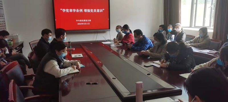 3月11日,中专部直属党支部组织全体党员举行“学党章学条例增强党员意识”主题党日活动。党委委员、党委宣传部部长、党支部副书记张贯彻传达了赵校长关于职业本科创建工作的会议精神。他指出,全体教师尤其是党员教师一定要明确2022年学校的主要工作,本科建设的重要时间节点,立足本职工作,配合学校本科创建工作。会上,张贯彻老师领学了党章和条例,张欢、王香玉、钱婷、王沁等四位党员进行了学习心得分享。