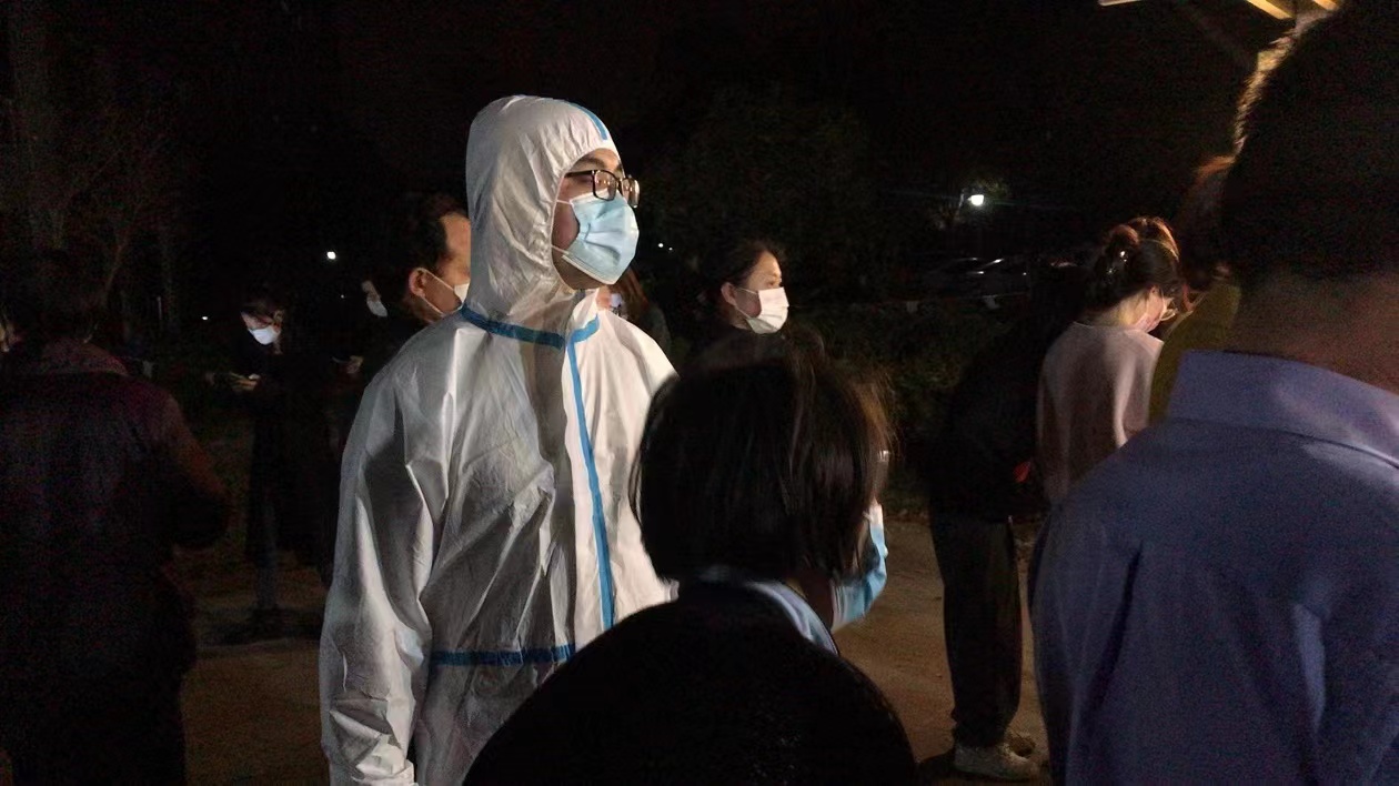“3月18日是我们社区封控的第一天,我报名参加社区志愿者,工作时间是12点—17点,约5个小时不能上厕所,我就从当天上午开始控制饮水量。我在采样现场维护核酸检测的秩序,为没有智能手机以及不会操作智能手机的老人们填写信息并验证身份。站了5小时,腿酸嗓子也干,但是帮助了这么多人,这值得!”