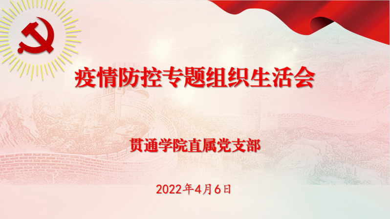 根据学校党委的安排和部署,2022年4月6日,贯通学院直属党支部以在线会议形式召开了疫情防控专题组织生活会,贯通学院全体党员参加会议,会议由党支部副书记王晟主持。