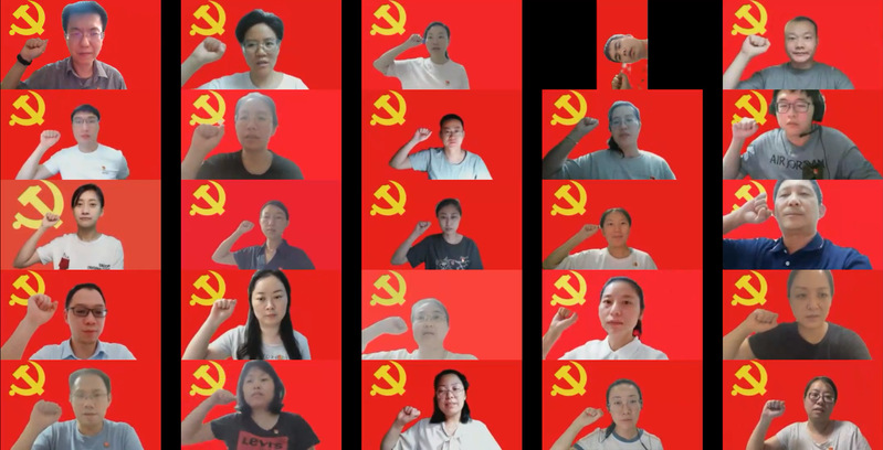 随后,进入重温入党誓词环节,全体党员打开摄像头和话筒,面对党旗,举起右手,由贯通学院直属党支部副书记王晟老师领誓,全体党员进行宣誓。“我志愿加入中国共产党,拥护党的纲领,遵守党的章程,履行党员义务,执行党的决定,严守党的纪律,保守党的秘密,对党忠诚,积极工作,为共产主义奋斗终身,随时准备为党和人民牺牲一切,永不叛党。宣誓人:***。”