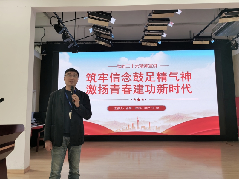 张帆老师围绕“筑牢信念鼓足精气神 激扬青春建功新时代”主题展开宣讲。他阐释了党的二十大主题对青年学生的重大意义,从校园疫情防控和技能成才、技能报国、强国有我方面,激励同学们要把个人的职业理想融入国家职业教育的大局中去,为实现中华民族伟大复兴而贡献自己的力量。
