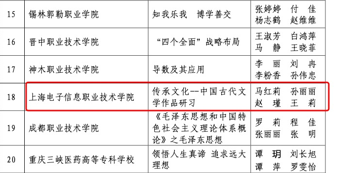近日,我校消防救援、贯通学院与公共基础学院组成的语文教学团队在2022年全国职业院校技能大赛教学能力比赛中喜获三等奖!马红莉、孙丽丽、赵瑾、王莉四位老师精心打磨的作品《传承文化--中国古代文学作品研习》斩获高职公共基础课程组三等奖,这是上海高职语文在此赛项中取得的最好成绩。