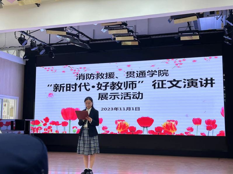 11月1日下午,消防救援、贯通学院在闵行校区报告厅举行“新时代·好教师”征文演讲展示活动。学院教师工作部副部长鲁家皓、消防贯通学院基础二系主任孙丽丽、社团指导教师杨奇担任评委,各班学生代表参与活动。