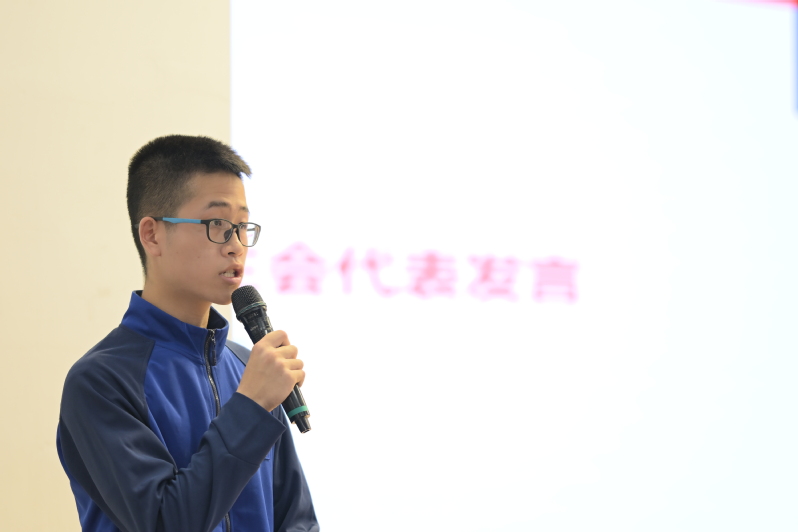 新一届学生会执行主席黄羿洋同学上台发言。他表达了对老一届学生会成员的感激之情,并表示将带领新一届学生会成员,以更加饱满的热情和更加扎实的工作作风,为学院发展贡献自己的力量。同时,他也对新一届学生会骨干提出要求,确保日后学生会工作能够有条不紊地进行。他还承诺,将带领学生会加强与学院各部门的沟通协作,为同学们提供更加优质的服务。