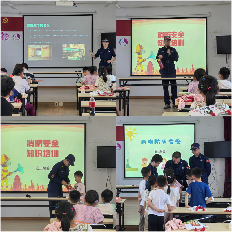 消防安全重于泰山,开展消防科普能在一定程度上提升居民的防火意识,减少火灾隐患,保障人民生命财产安全。23消防救援1班季浩楠,22消防救援(一贯)1班胡维逸、姚顾舜三位同学在教师的指导下,精心准备科普内容。现场用简洁、专业的语言向社区居民普及用电用气和防火安全知识。同时,现场还指导小朋友们正确使用干粉灭火器的方法。