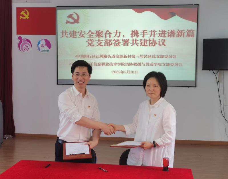 学习会后,消防救援与贯通学院直属党支部书记张贯彻与沧源新村第三居民区党总支书记栾金美展开深入交流。双方从各自主责主业出发,围绕优势互补创新实践、资源共享服务共融、党建联建活动共办、难题共解发展共促等多个角度进行充分协商。经友好探讨,双方达成共识,正式签署党支部结对共建协议,为后续长期合作奠定坚实基础。